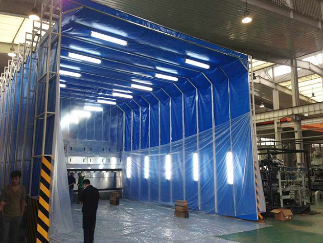 伸縮性噴漆房是一種新型可移動式噴漆房,除具有傳統噴漆房的密閉、通風、除漆霧功能外,該噴漆房還可以拉伸,噴漆的空間可變大變小,有效節約噴漆時間,特別適用行車吊運場所使用。